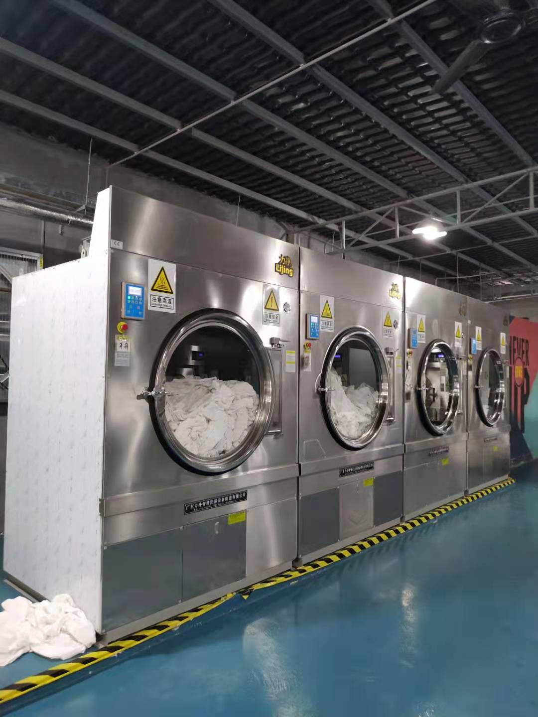 一、全自动工业洗衣机和全自动工业烘干机。这两种机型是目前工厂工作服洗衣房最常见的设备组合。省时省力,快捷方便,特别适用于洗涤量大的批量洗涤厂。